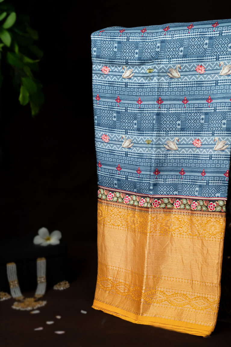Varamahalakshmi Blue & Mustard Fancy Digital Print Saree
