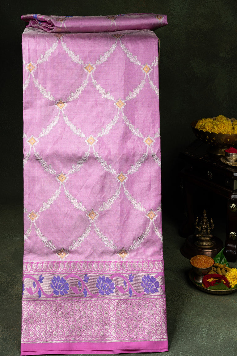 Varamahalakshmi Blush Pink & Silver Uppada Jaal Saree