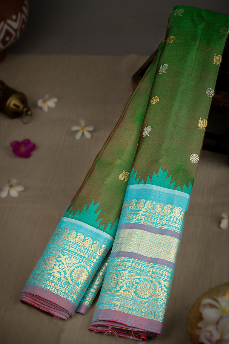Varamahalakshmi Bottle Green & Ocean Blue Gadwal Buttis Saree