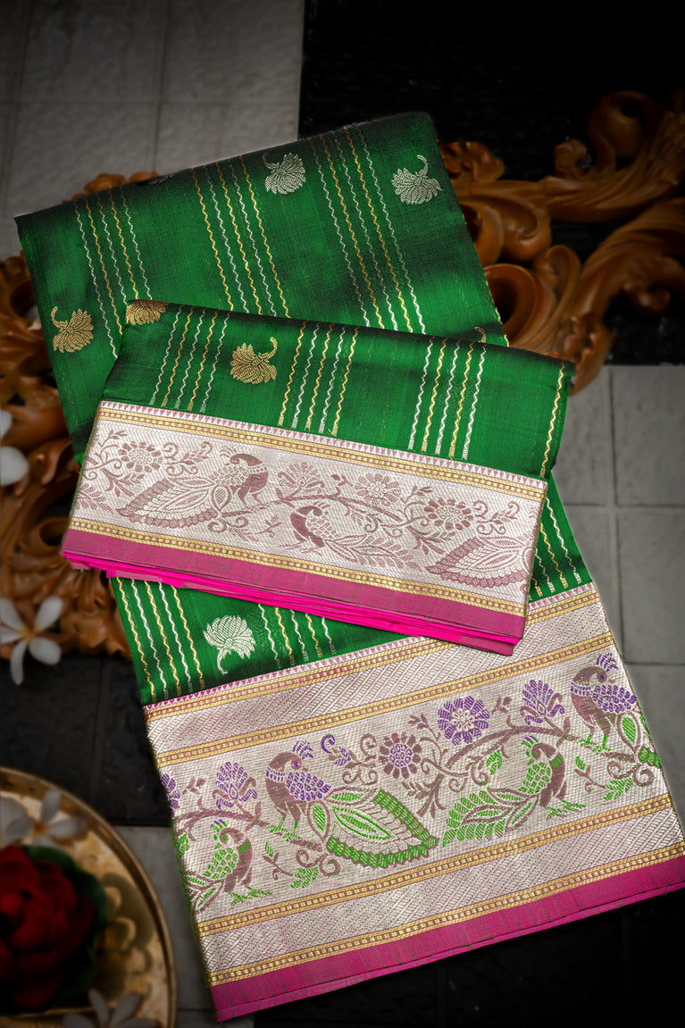 Varamahalakshmi Bottle Green & Magenta Venkatagiri Buttis Saree