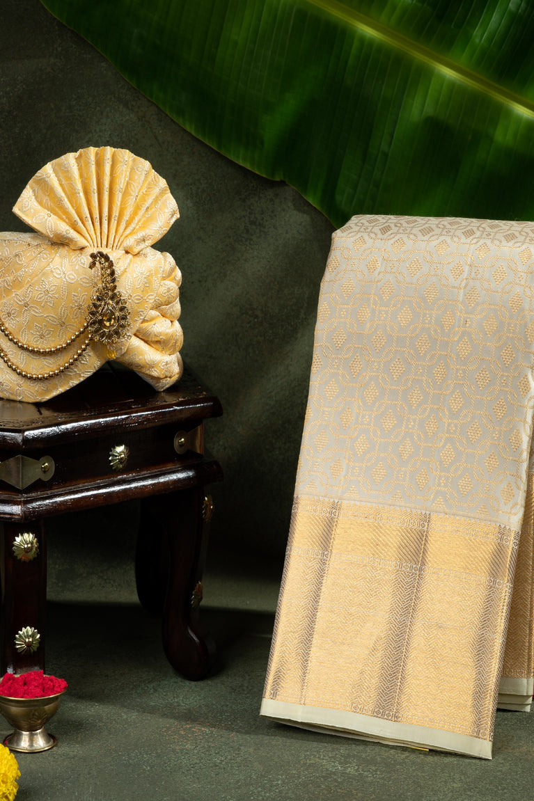 Varamahalakshmi Cream & Cream Kanchipuram Geometric Saree