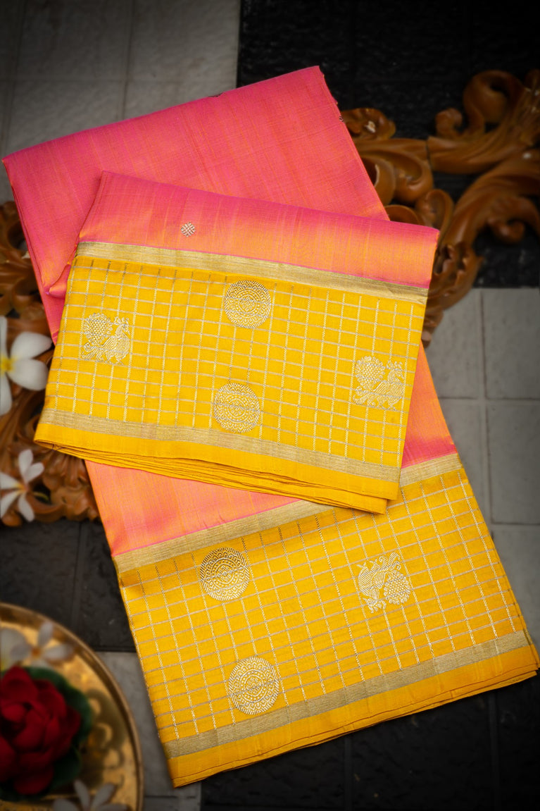 Varamahalakshmi Coral & Yellow Venkatagiri Buttis Saree