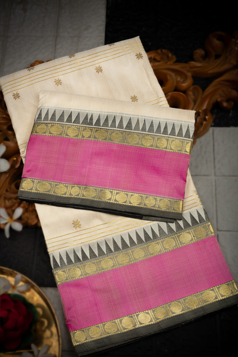 Varamahalakshmi Cream & Black Venkatagiri Buttis Saree