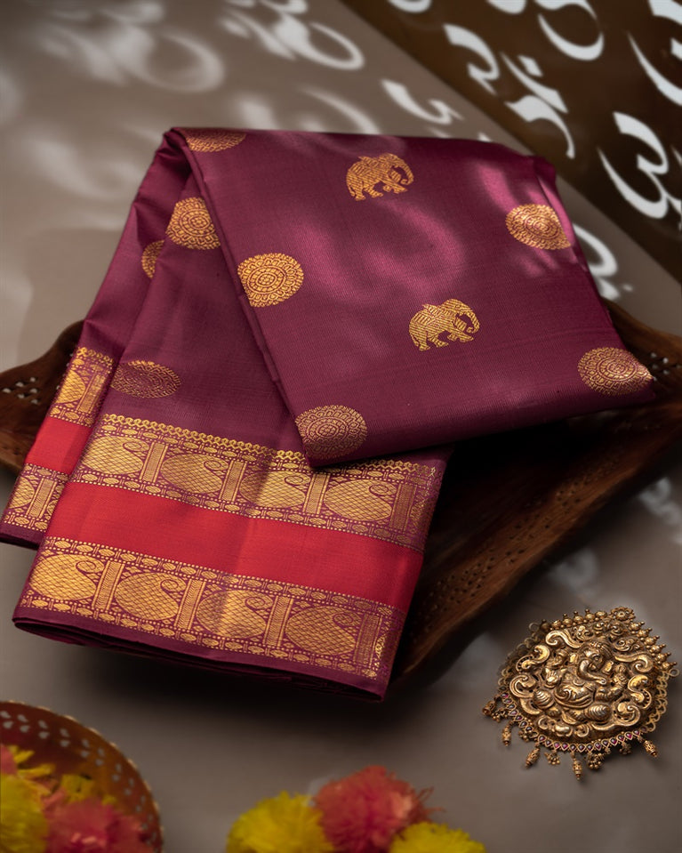 Varamahalakshmi Deep Magenta & Red Kanchipuram Buttis Saree