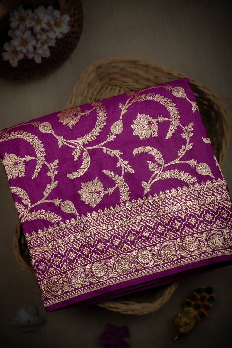 Varamahalakshmi Deep Magenta & Gold Banarasi Jaal Saree
