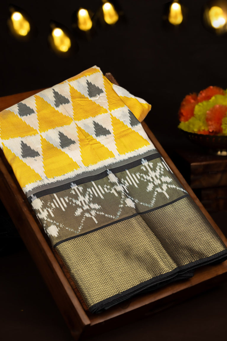 Varamahalakshmi Gold Yellow & Black Ikat Ikat Saree