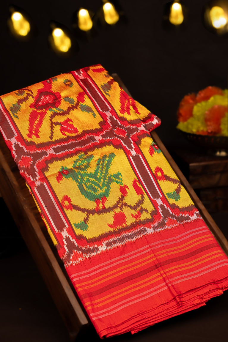Varamahalakshmi Gold Yellow & Red Ikat Ikat Saree