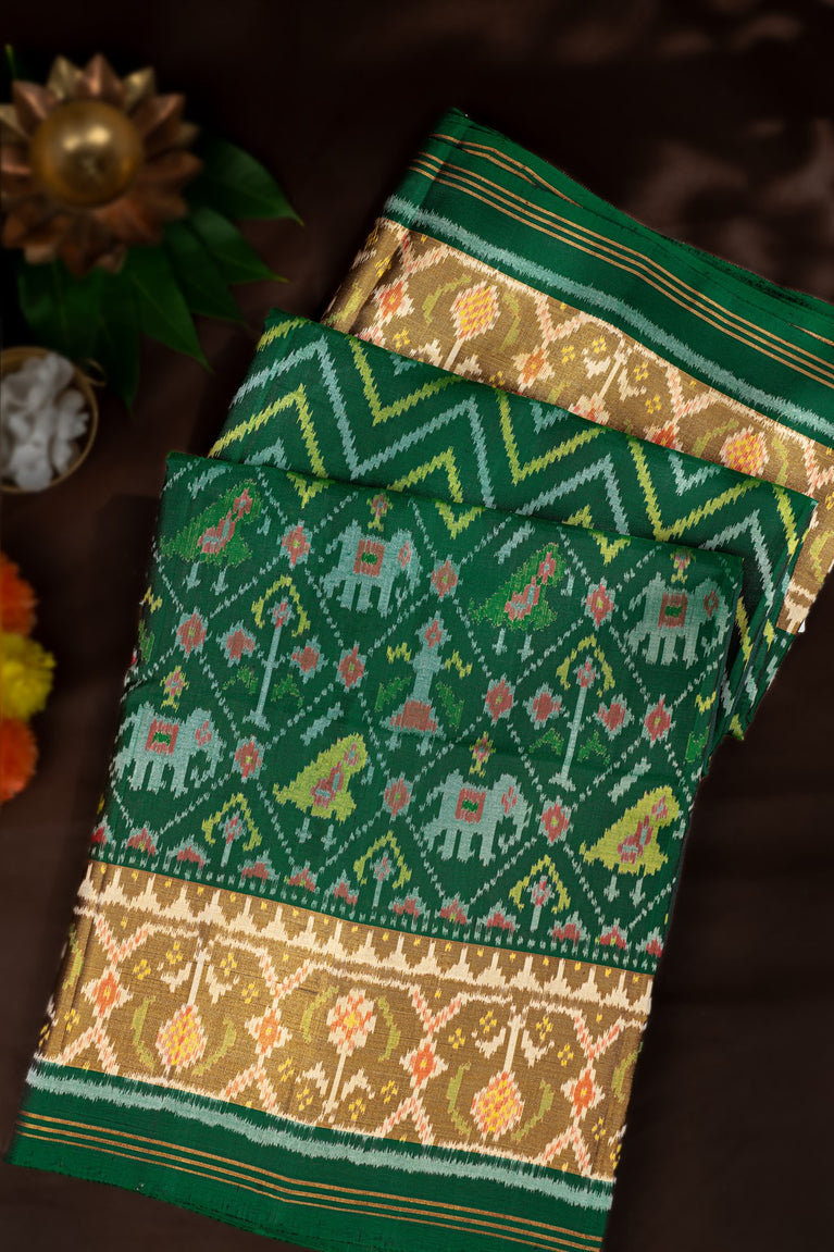 Varamahalakshmi Dark Green & Olive Green Patola Ikat Saree