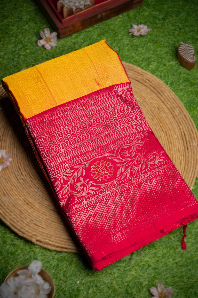 Varamahalakshmi Gold Yellow & Orange Kancheepuram Digital Print Saree