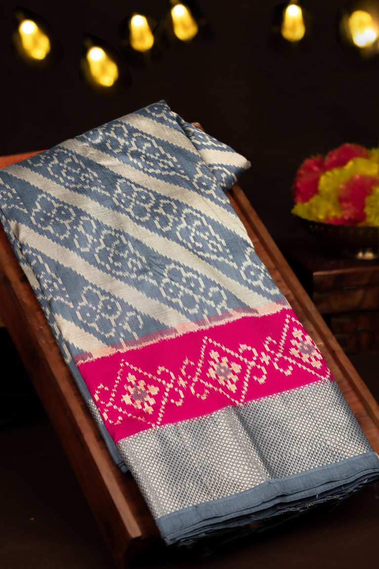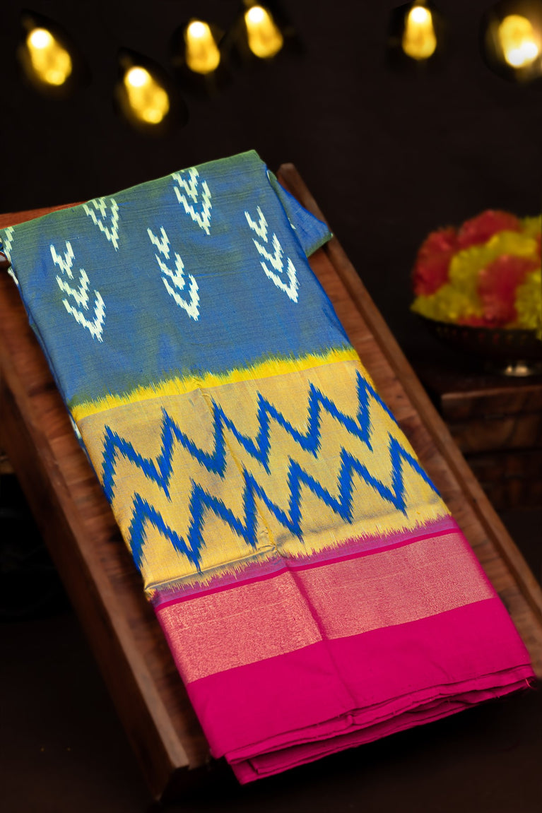 Varamahalakshmi Light Blue & Magenta Ikat Ikat Saree