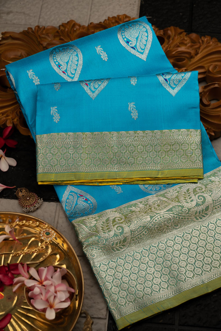 Varamahalakshmi Light Blue & Yellow Uppada Buttis Saree