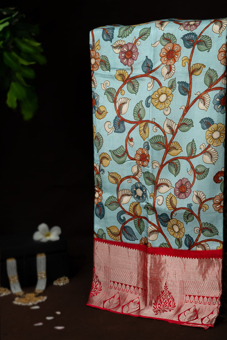 Varamahalakshmi Light Blue & Red Fancy Digital Print Saree