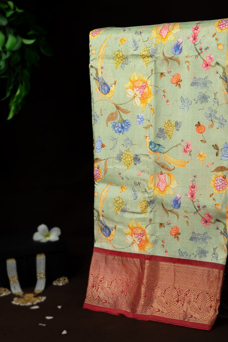 Varamahalakshmi Light Green & Maroon Fancy Digital Print Saree