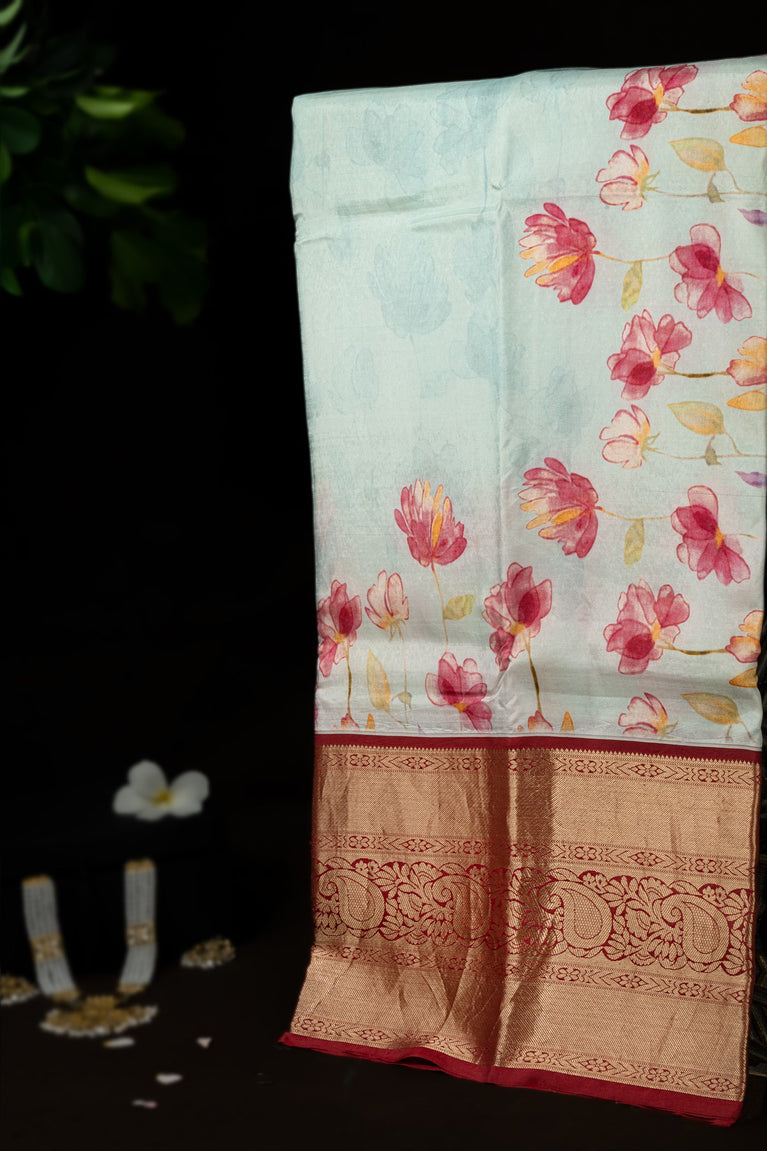Varamahalakshmi Light Blue & Maroon Fancy Digital Print Saree