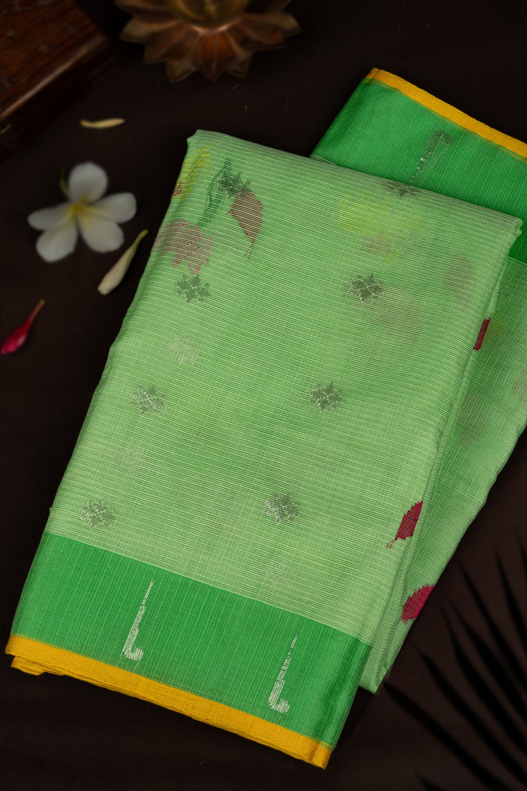 Varamahalakshmi Light Green & Mustard Zari Kota Buttis Saree