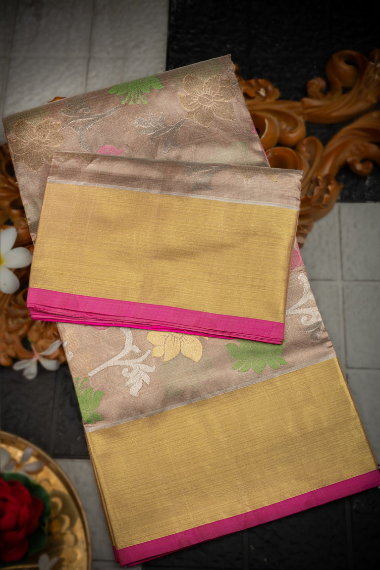 Varamahalakshmi Light Brown & Pink Venkatagiri Motifs Saree