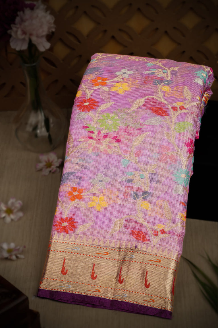 Varamahalakshmi Lavender & Purple Fancy Floral Jaal Saree