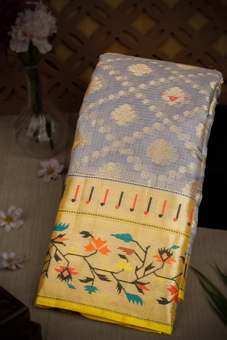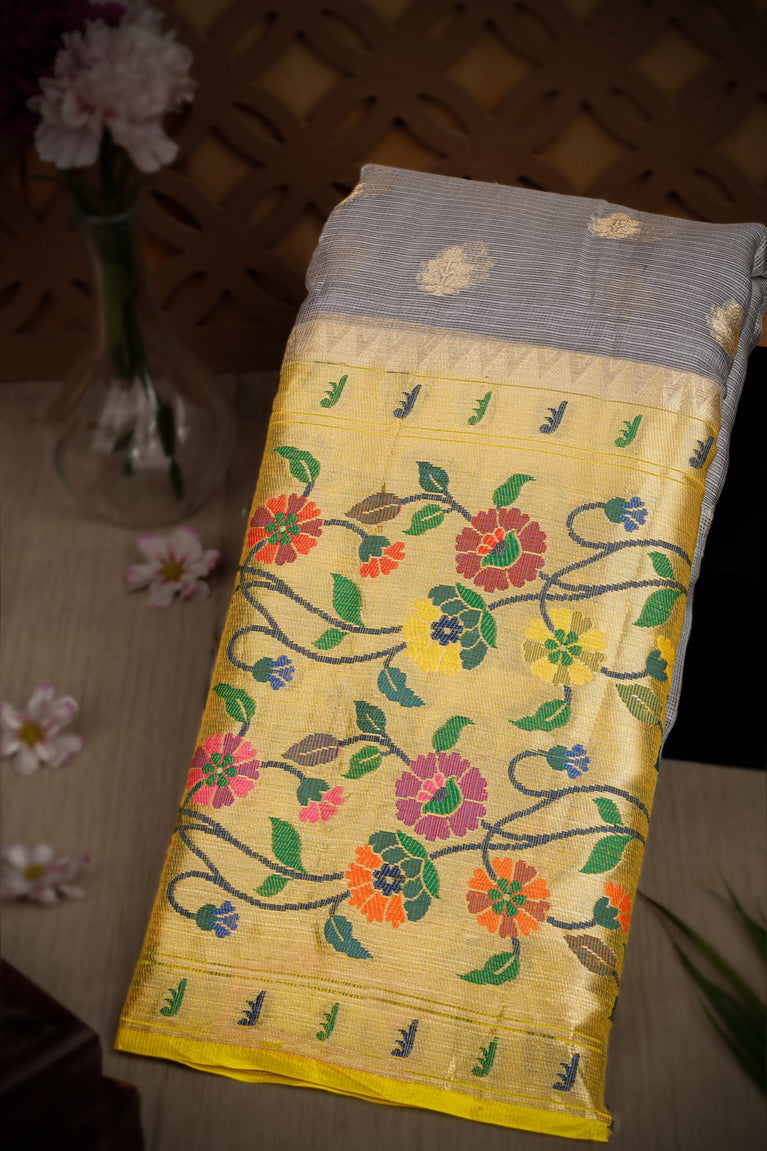 Varamahalakshmi Grey & Yellow Fancy Buttis Saree