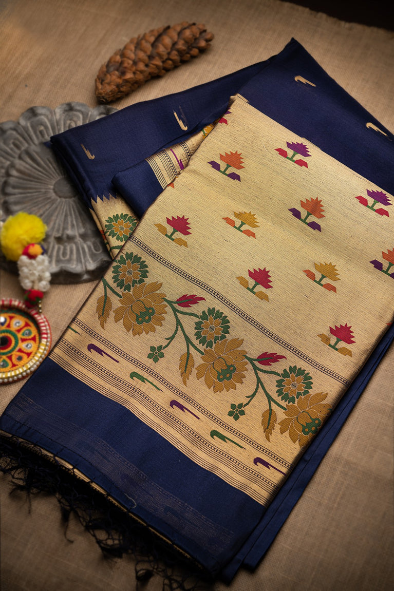Varamahalakshmi Navy Blue & Gold Banarasi Fancy Buttis Saree