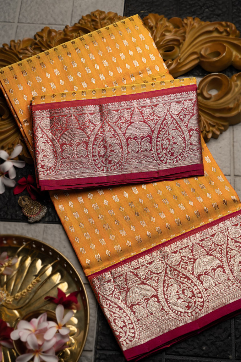 Varamahalakshmi Mustard & Maroon Kanchipuram Buttis Saree