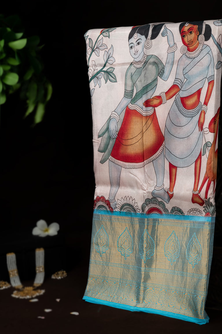 Varamahalakshmi Multi-Colour & Sea Blue Fancy Digital Print Saree