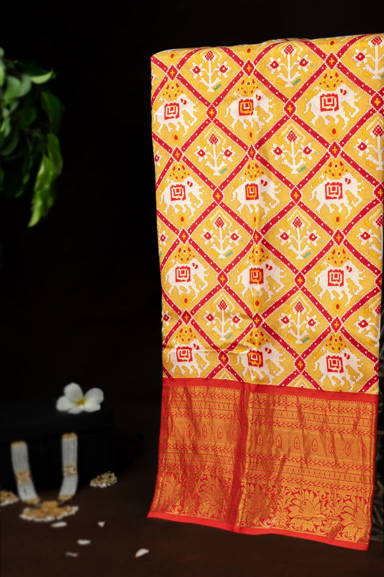 Varamahalakshmi Mustard & Maroon Patola Ikat Saree
