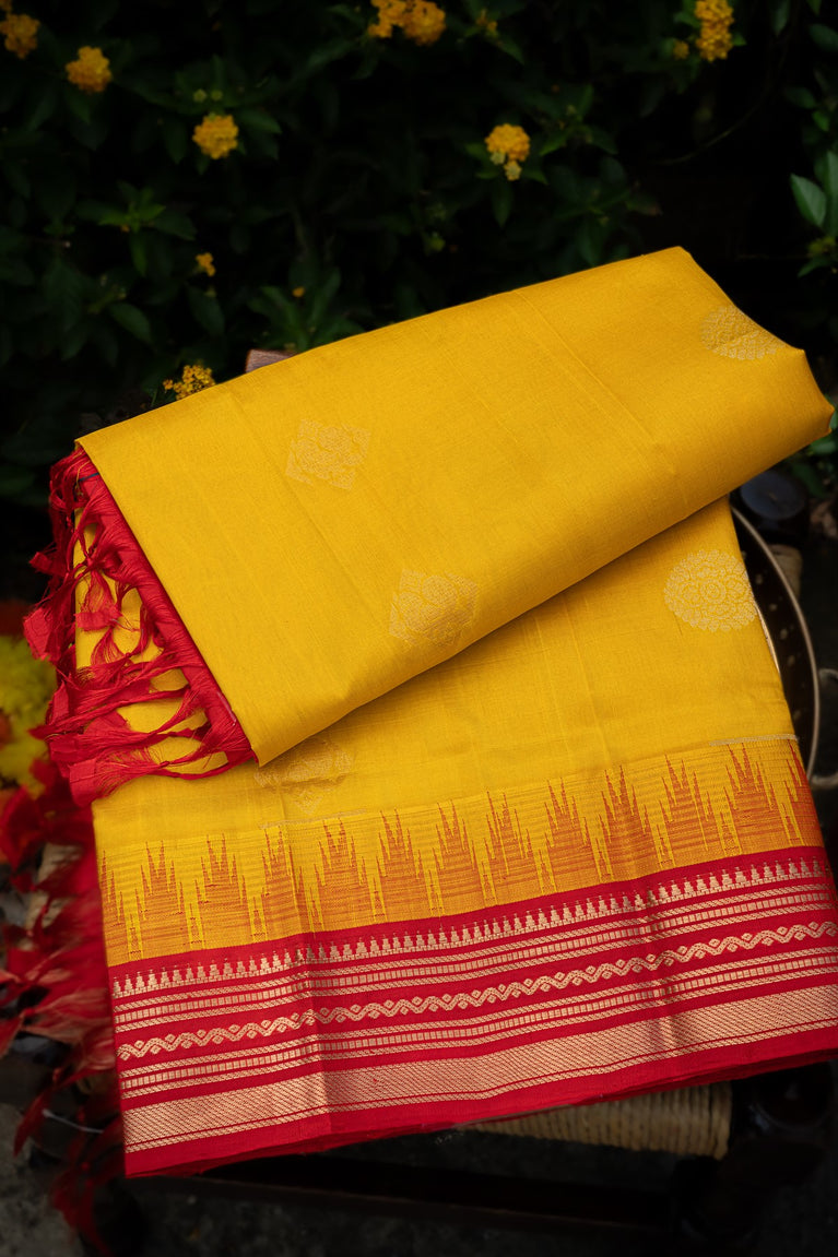 Varamahalakshmi Mustard & Red Kuppadam Buttis Saree