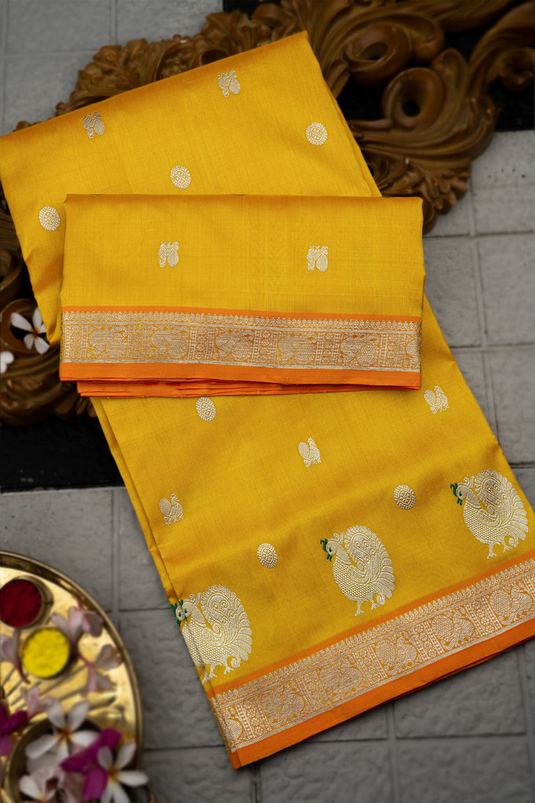 Varamahalakshmi Mustard & Orange Uppada Buttis Saree