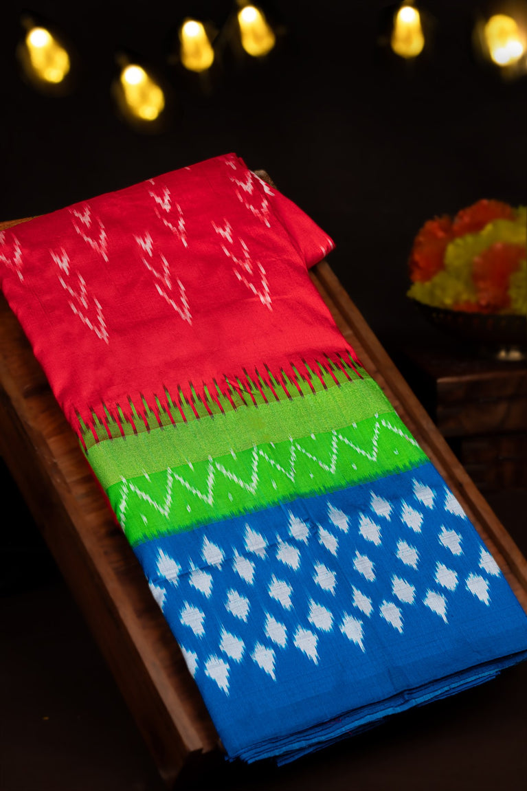 Varamahalakshmi Red & Teal Blue Ikat Ikat Saree