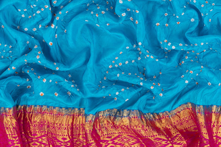 Varamahalakshmi Teal & Pink Bandhani Bandhani Saree