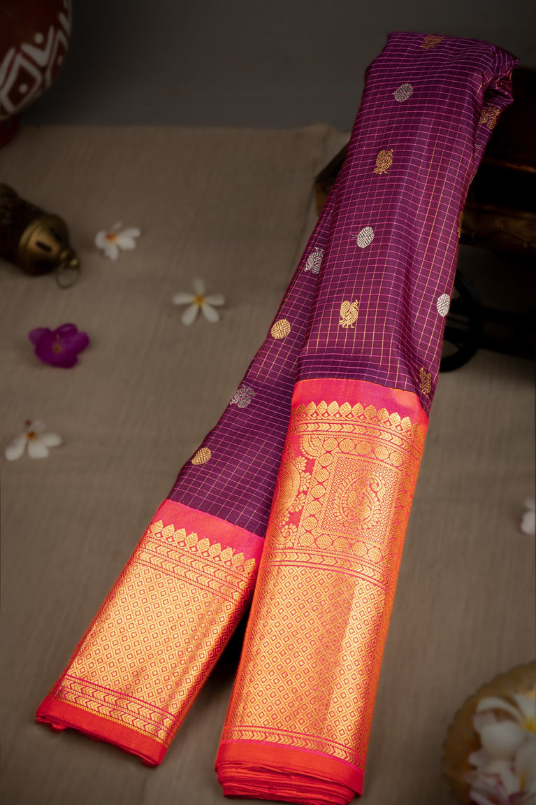 Varamahalakshmi Violet & Blush Pink Kancheepuram Checks Saree