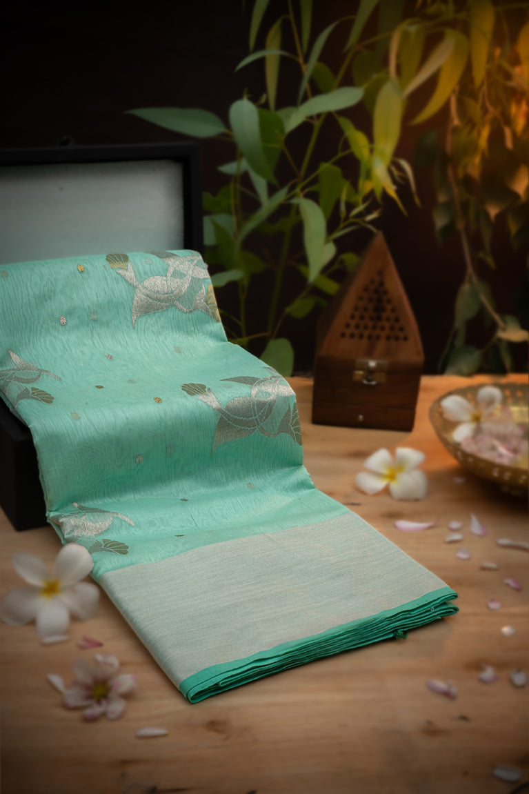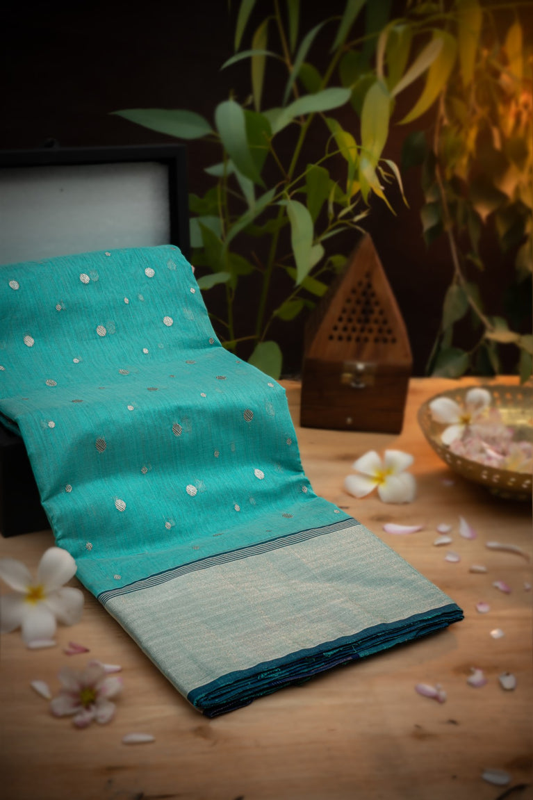 Varamahalakshmi Sea Green & Silver Chanderi Buttis Saree