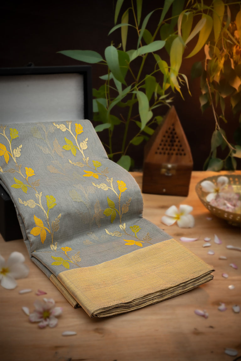 Varamahalakshmi Space Grey & Multi-Colour Chanderi Floral Jaal Saree