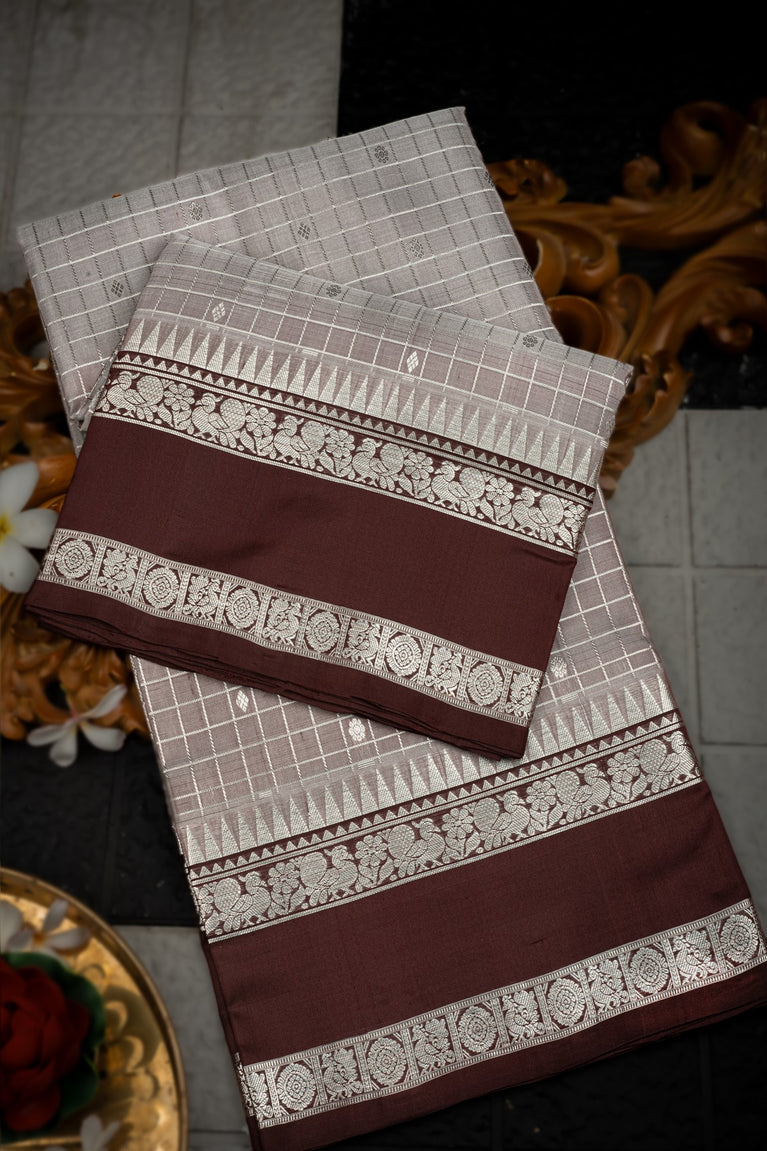 Varamahalakshmi Silver & Brown Venkatagiri Checks And Buttis Saree