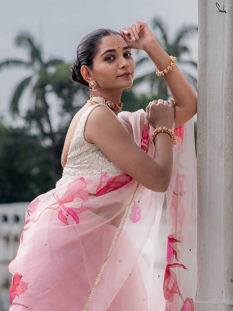 Please note: The blouse shown in the image is for styling purposes only and is not the actual blouse that comes with the saree.