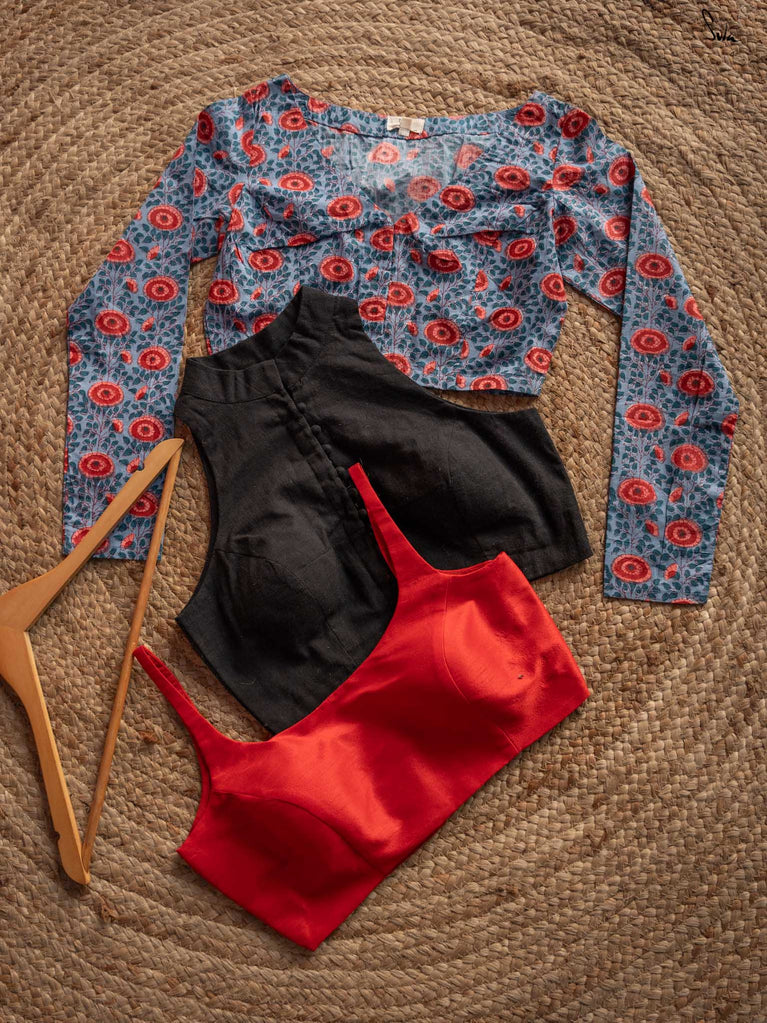 Shine every day with Aakari! Aakari includes three blouses made from cotton and artificial silk. It’s a set that combines softness with a touch of luxury, making it easy to add a little extra to your everyday look.