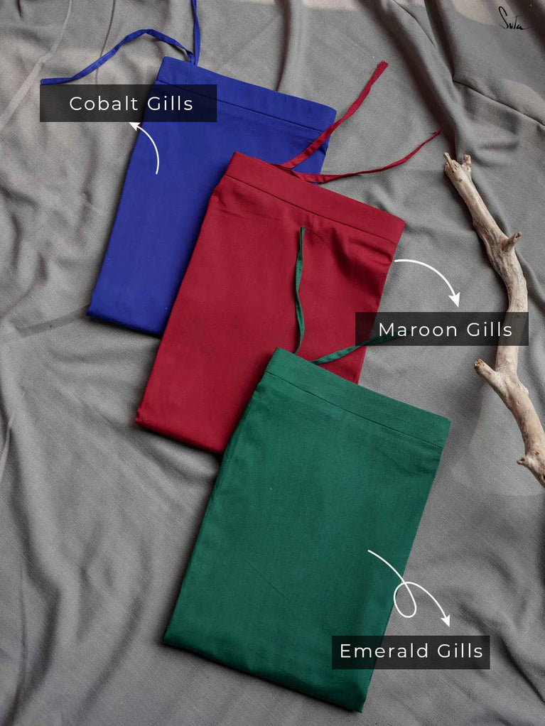 This combo includes 3 cotton-lycra underskirts in Cobalt, Emerald, and Maroon. The cool blue, fresh green, and deep red create a wave of beautiful, bold colors. Perfect for anyone who loves strong, striking tones.