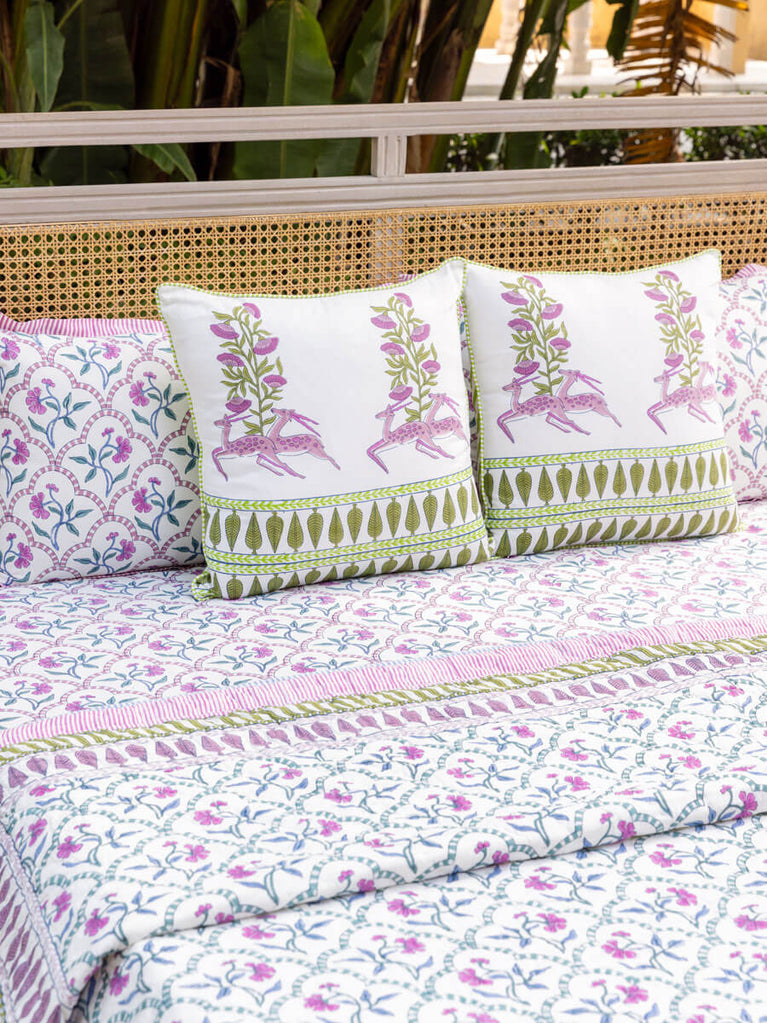 Alankriti Hand Block Printed Cotton Cushion Cover - 20 Inch