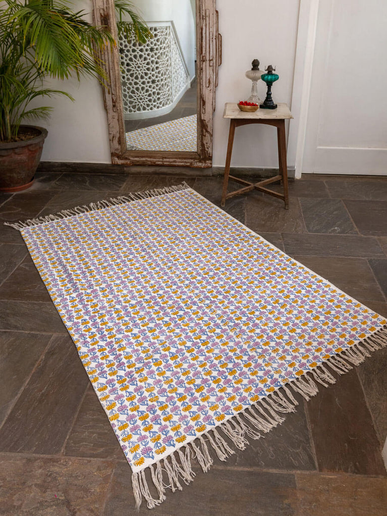 Abha Block Printed Cotton Dhurrie Rug