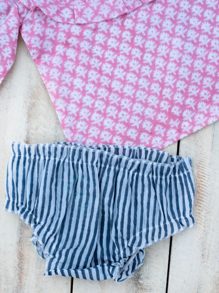 Pink Blossom Organic Cotton Block Printed Angrakha Set