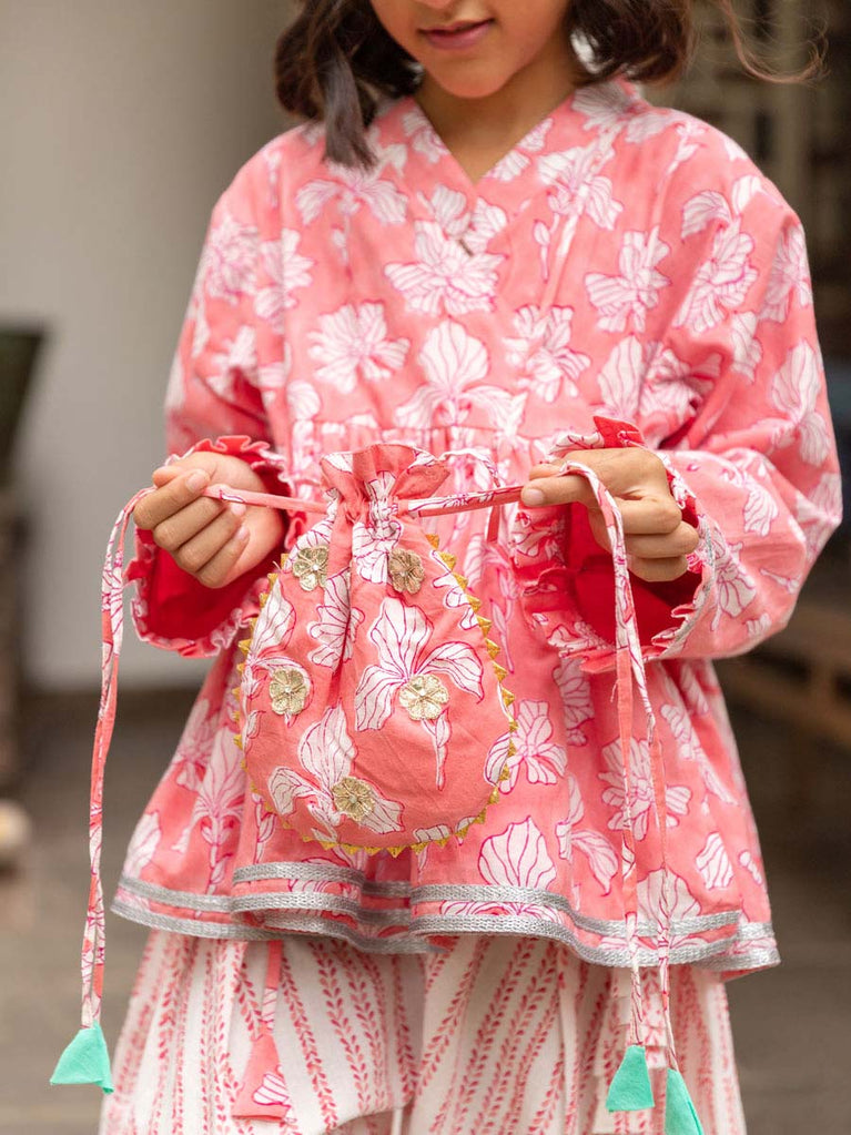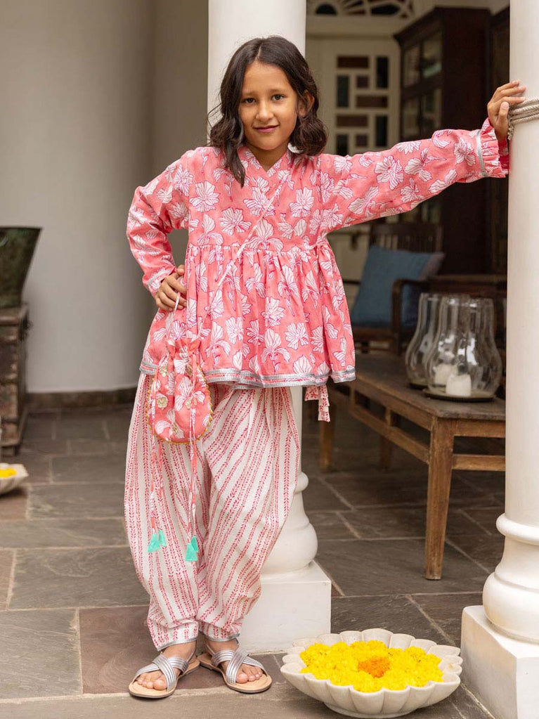 Pink Giraffe Organic Cotton Block Printed Angrakha Set