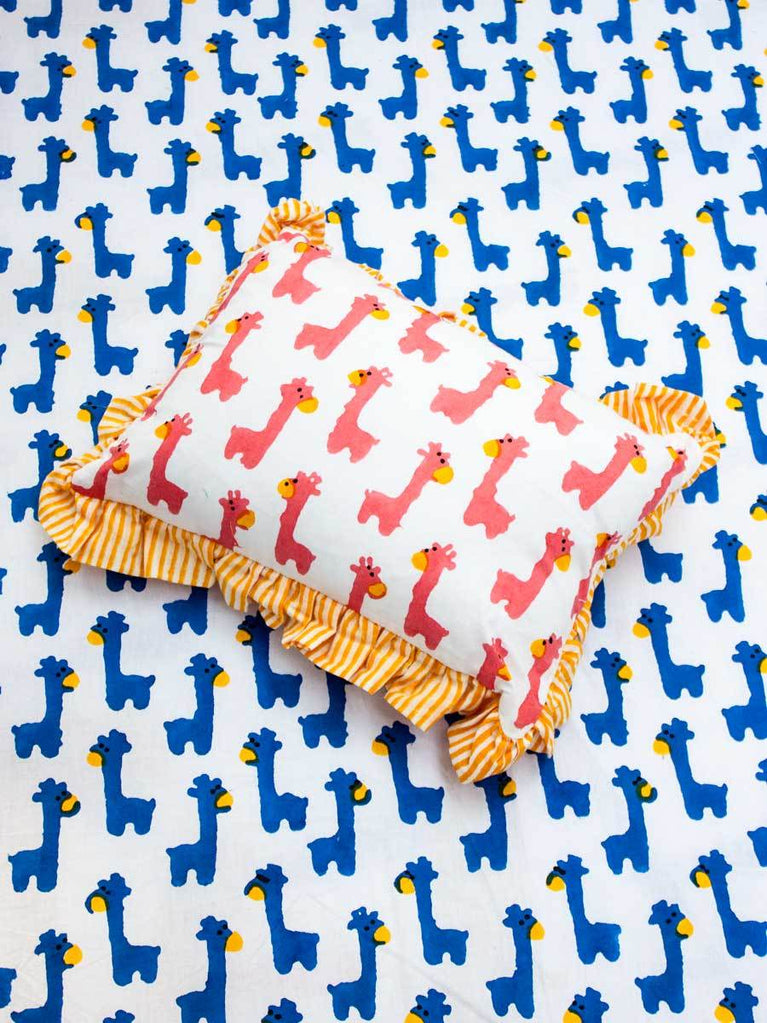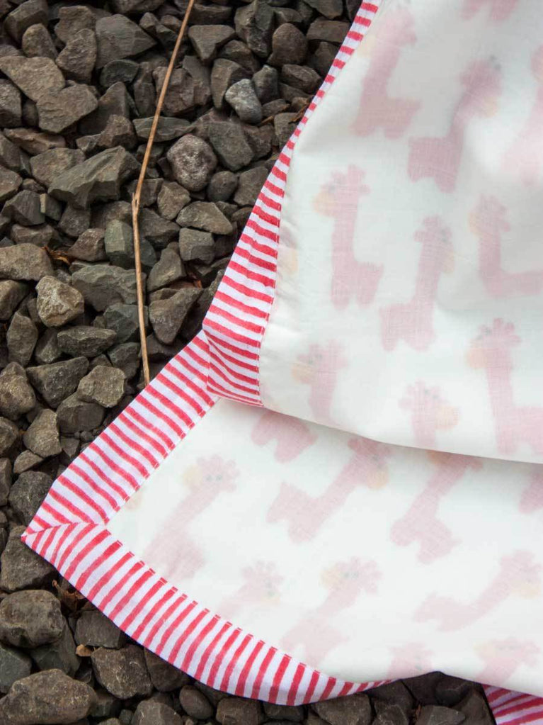 Pink Giraffe Block Printed Cotton Top & Pyjama Set