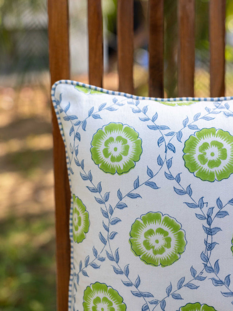 Primrose Block Printed Cotton Cushion Cover - 16 Inch