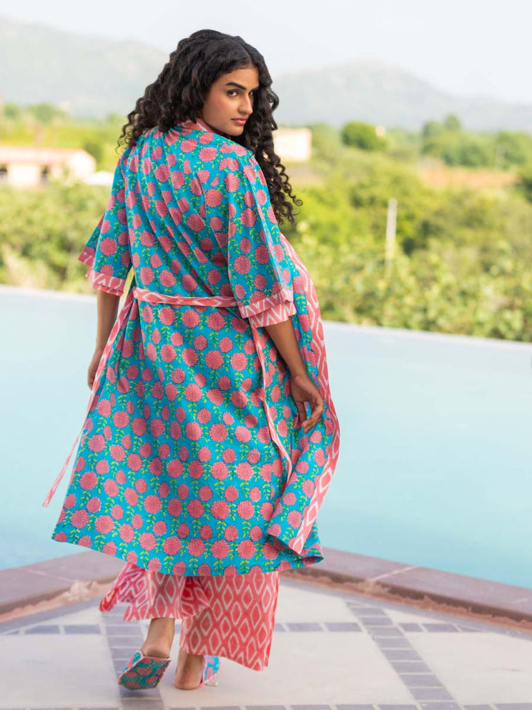 Pink Winter Block Printed Cotton Kimono/Robe