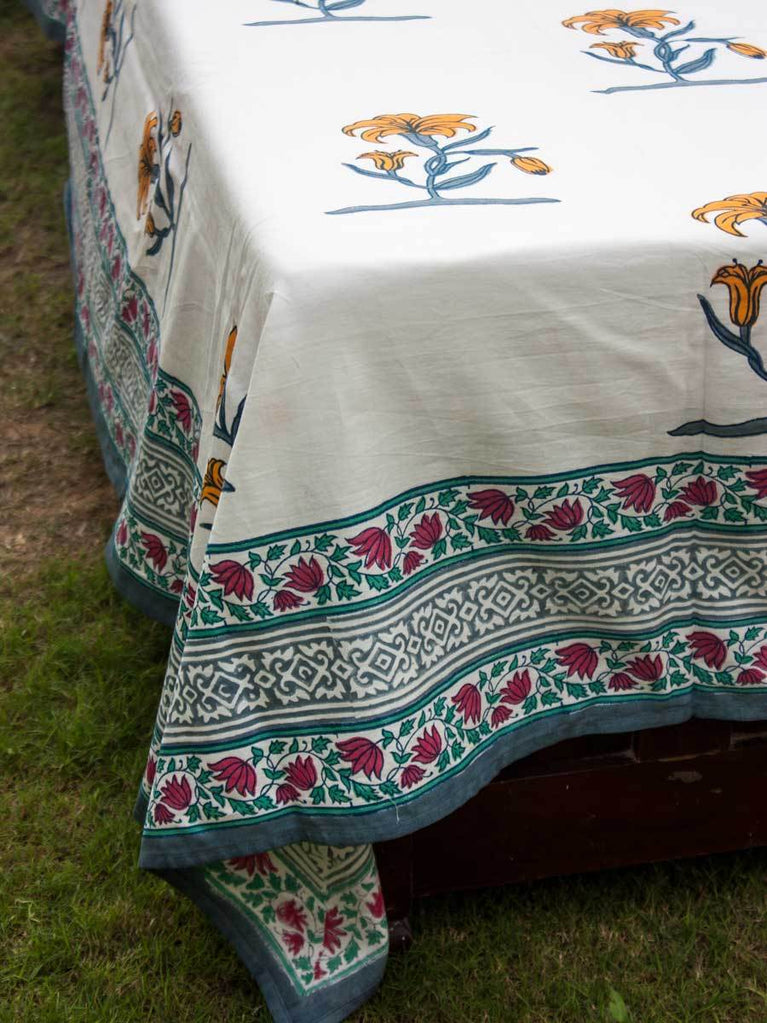Pookalam Floral Block Printed Cotton Bedsheet