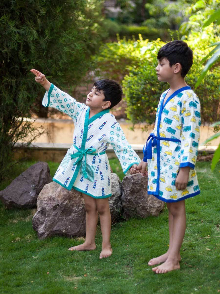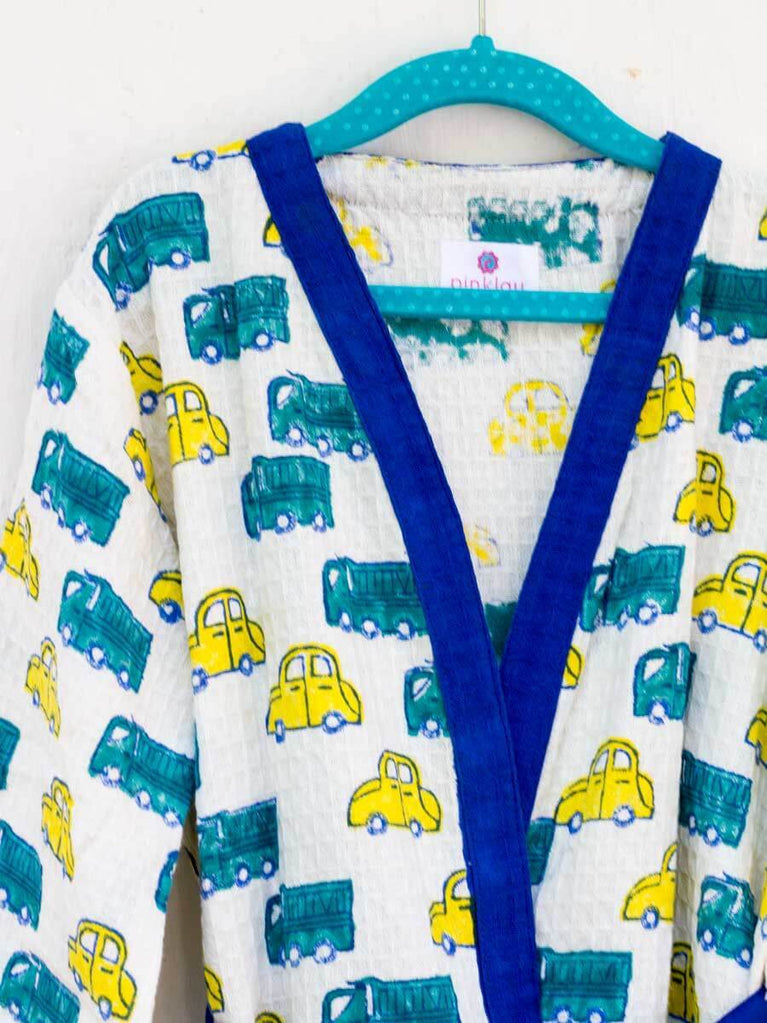 Power Wheels Block Printed Waffle Cotton Bath Robe