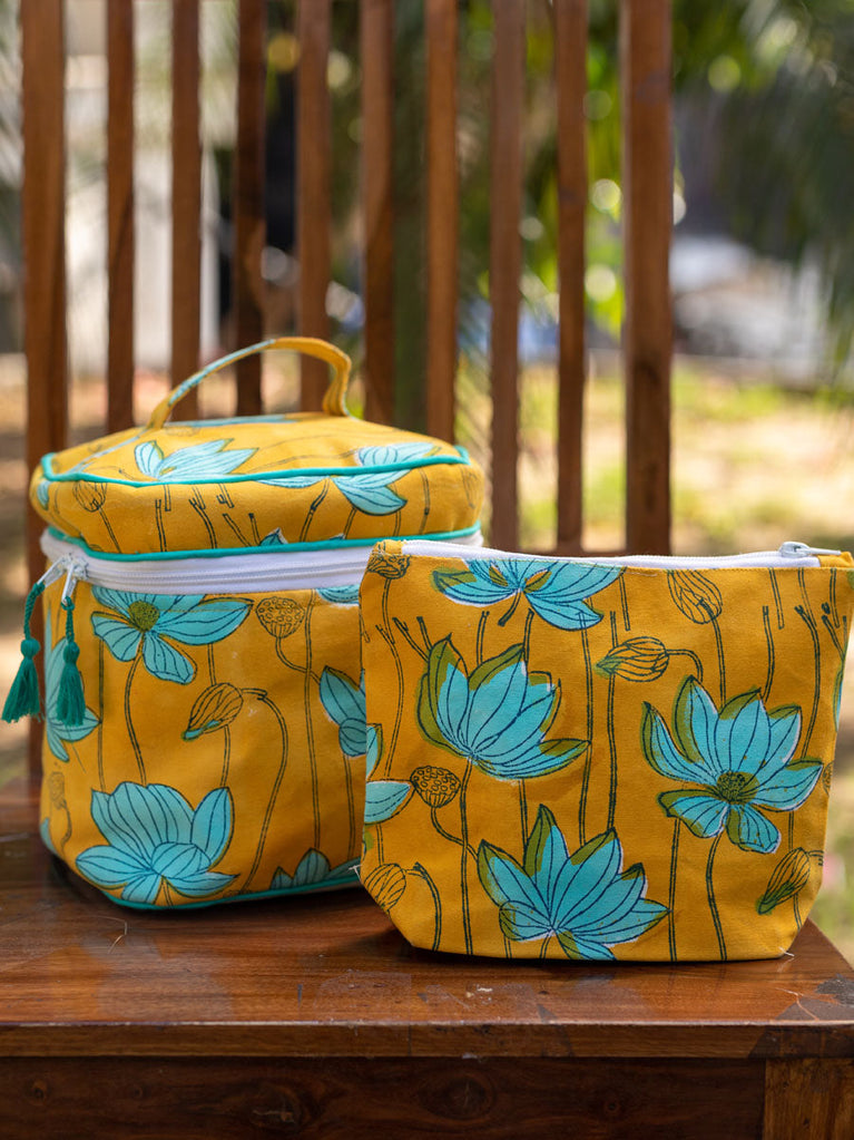 Pratidhi Block Printed Cotton Travel Vanity Case