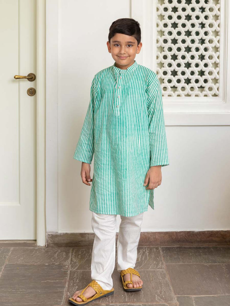 Set of 3 - Kanha Organic Cotton Block Printed Long Kurta with Jacket