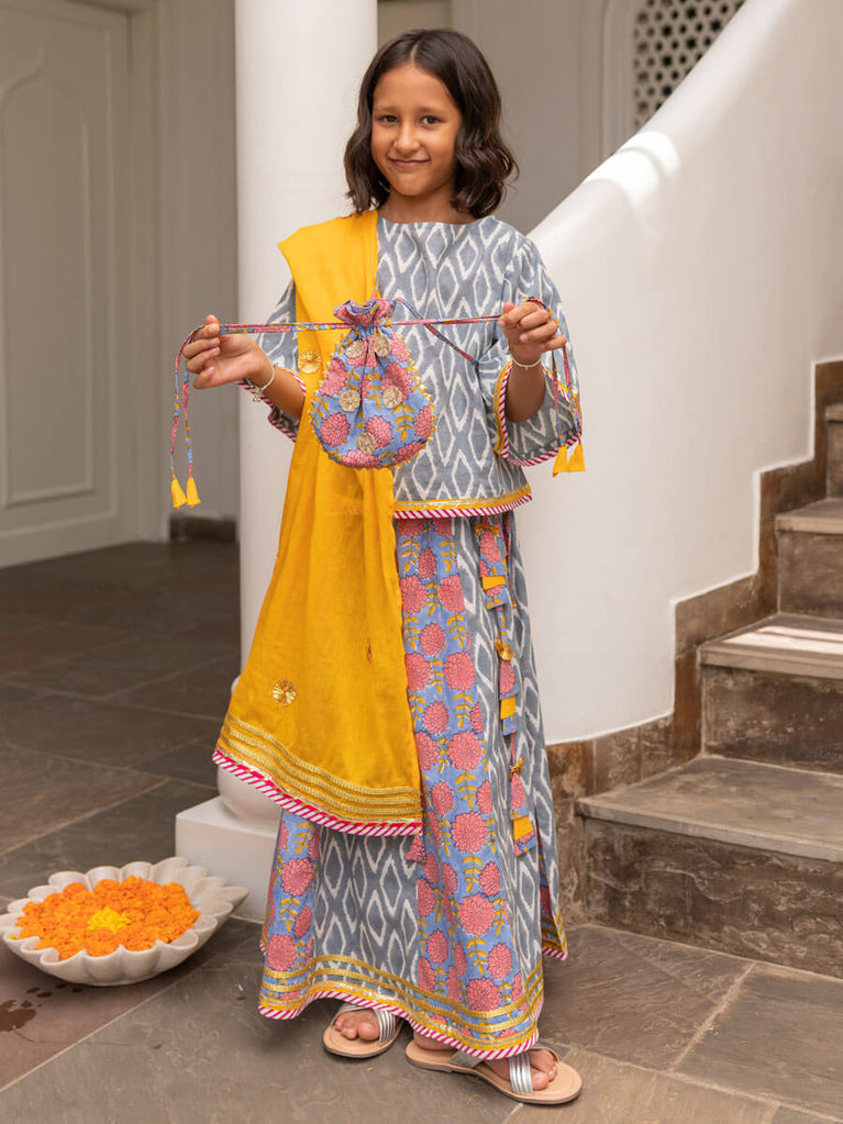 Set of 3 - Kashish Block Printed Cotton Lehanga