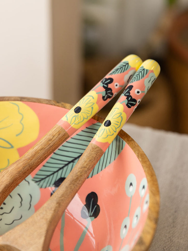 Set of 3 - Flower Melody Salad Bowl With Serving Spoons